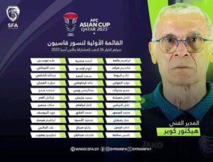 أعلن اتحاد كرة القدم، أمس الأربعاء، عن القائمة الأولية لمنتخبنا الوطني للرجال بكرة القدم، والذي سيشارك في نهائيات كأس آسيا، والمقرر إقامتها في قطر خلال العام القادم 2024 من 12 كانون الثاني و حتى 10 شباط.