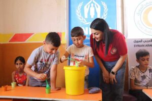 نفذ متطوعو فرع الهلال الأحمر العربي السوري نشاطاً ترفيهياً لـ 18 طفلاً في مركز الرعاية الاجتماعية بطرطوس، وذلك بهدف تشجيع الصغار على الاهتمام بالبيئة، والحفاظ عليها.