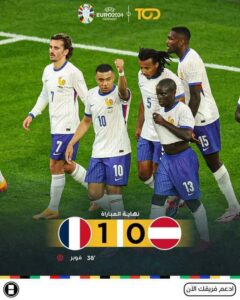 اقتنص منتخب فرنسا فوزاً صعباً وبشق الأنفس من أمام منتخب النمسا بهدف وحيد في المباراة التي أقيمت مساء أمس الإثنين، ضمن منافسات الجولة الأولى للمجموعة الرابعة من بطولة كأس أمم أوروبا يورو 2024 والمقامة حالياً في ألمانيا.