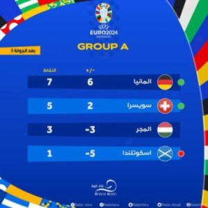 استعاد منتخب ألمانيا مستضيف بطولة كأس أمم أوروبا يورو 2024 صدارة المجموعة الأولى من نظيره منتخب سويسرا بعد أن حقق التعادل في الوقت القاتل من المباراة (الوقت بدل الضائع)، لتنتهي المباراة بالتعادل الإيجابي بهدف لهدف، وذلك مساء أمس الأحد، ضمن منافسات الجولة الثالثة والأخيرة من البطولة.
