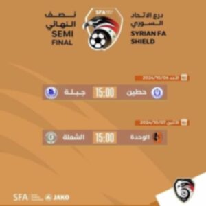 و تنطلق مباراتا الدور نصف النهائي يوم الأحد القادم حيث يلتقي جبلة مع حطين، ويوم الإثنين يلتقي الوحدة مع الشعلة.