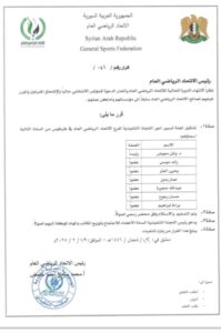 أصدر المكتب التنفيذي للاتحاد الرياضي العام قراراً بتشكيل لجنة تسير أمور اللجنة التنفيذية لفرع الاتحاد الرياضي في محافظة طرطوس بعد انتهاء الدورة الحالية للاتحاد الرياضي، برئاسة الدكتور وائل معوض، وهو حاصل على الدكتوراه في الإدارة الرياضية وشغل منصب عميد كلية التربية الرياضية في اللاذقية ونائبها العلمي، وأخرج العديد من المهرجانات القارية والدولية والعالمية في الإمارات وعمان و الصين وبلغاريا و اليونان….