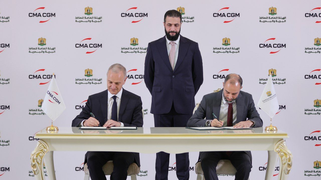 برعاية رئيس الجمهورية السيد أحمد الشرع الهيئة العامة للمنافذ البرية والبحرية مع الشركة الفرنسية CMA CGM توقعان عقد تشغيل محطة حاويات اللاذقية لمدة ثلاثين عاماً