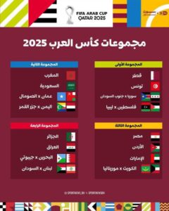 أسفرت قرعة بطولة كأس العرب للرجال بكرة القدم 2025 والتي سحبت اليوم الأحد بالعاصمة القطرية الدوحة عن مجموعات قوية ومباريات مثيرة، حيث جاء منتخبنا في مجموعة قوية وهي المجموعة الأولى.