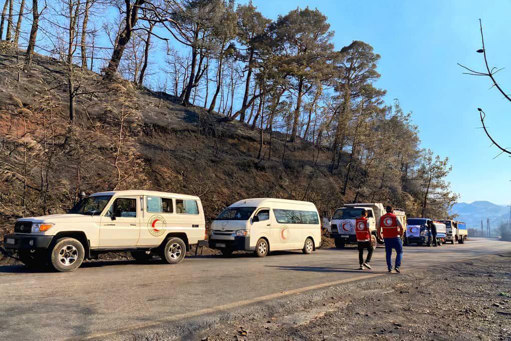 استجابت فرق الهلال الأحمر العربي السوري لمزيد من الخدمات اللوجستية في القرى المتضررة من الحرائق، وذلك بالتنسيق مع وزارة الطوارئ،