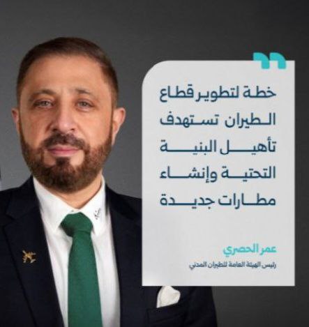 أعلن رئيس الهيئة العامة للطيران المدني، السيد عمر الحصري، عن إطلاق خطة استراتيجية شاملة لتطوير قطاع الطيران في سوريا، تهدف إلى إعادة تموضع البلاد كمركز محوري لحركة الطيران الإقليمي والدولي، عبر الاستفادة من الموقع الجغرافي المتميز لسوريا، وفتح المجال أمام شركات طيران محلية جديدة، وتعزيز التعاون مع شركاء إقليميين ودوليين.