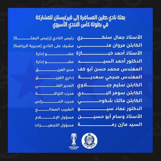 غادرتنا صباح اليوم بعثة نادي حطين لكرة القدم متوجهة إلى قيرغبزستان للمشاركة في بطولة كأس التحدي الآسيوي حيث يلتقي حطين مع فريق أبديش، وذلك يوم الأحد القادم في تمام الساعة 8 مساءً بتوقيت دمشق.