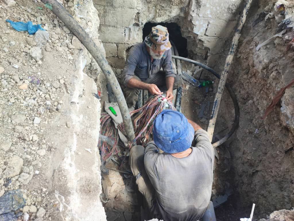 كما وتتابع الورشات أعمال إصلاح الكبل رقم ٧٥ بسعة ١٨٠٠ خط التابع لمركز اللاذقية الثاني، والذي يغذي مناطق جب حسن، ضاحية بسنادا، وجزءاً من بسنادا.