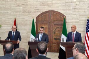 عُقد اليوم مؤتمر صحفي مشترك في العاصمة السورية دمشق جمع وزير الخارجية والمغتربين السوري أسعد حسن الشيباني، ونائب رئيس مجلس الوزراء وزير الخارجية وشؤون المغتربين الأردني أيمن الصفدي، والمبعوث الأمريكي الخاص إلى سوريا توماس باراك.