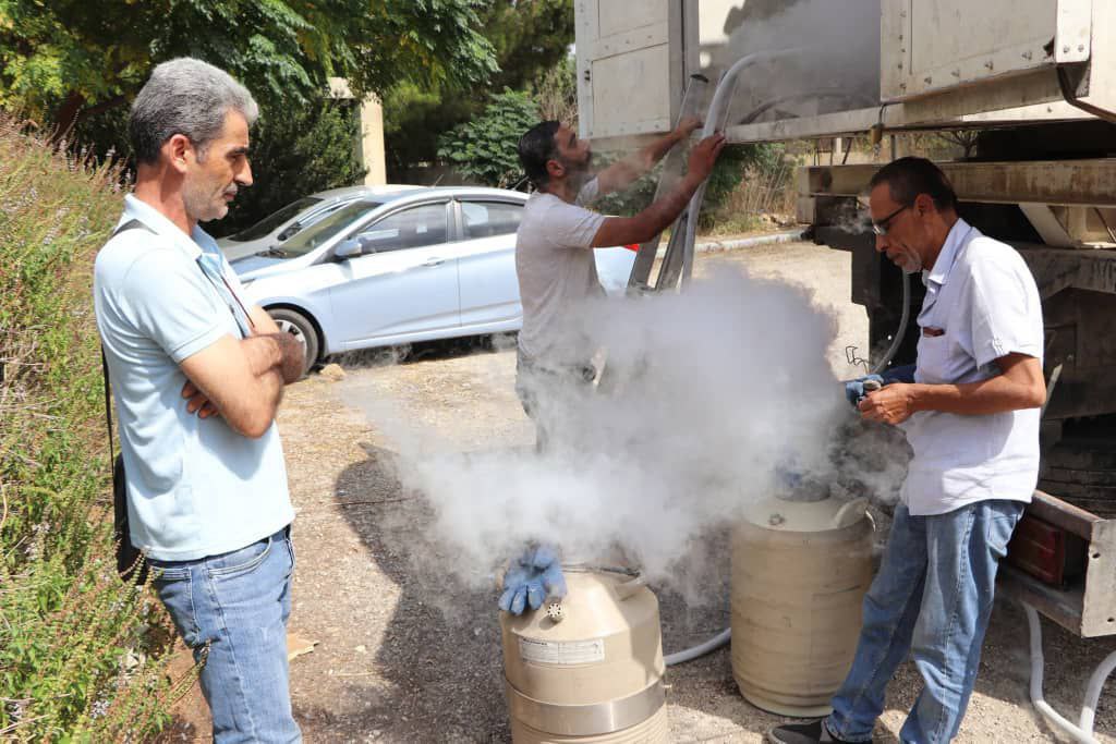 في إطار جهودها الرامية إلى تعزيز كفاءة العمل البيطري وضمان جودة المواد المستخدمة، قامت وزارة الزراعة والإصلاح الزراعي برفد مستودع الصحة والإنتاج الحيواني التابع لمديرية زراعة طرطوس بكميات من السائل الآزوتي المخصص لحفظ قشات التلقيح الاصطناعي، ضمن شروط التخزين المعتمدة.