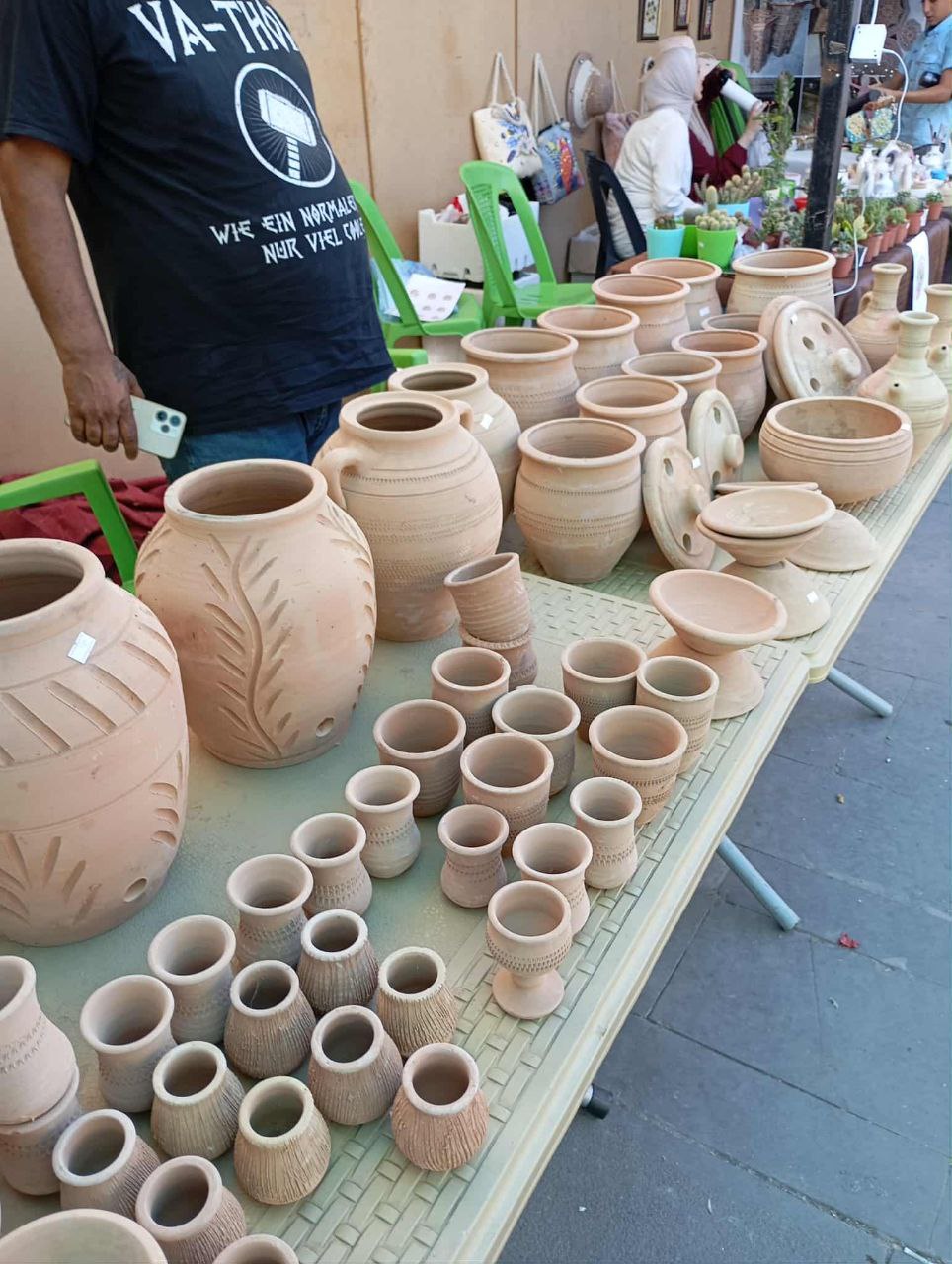 وطنجرة الطبخ ٢٥ ألف ليرة، وأصيص الزريعة ١٥ ألف ليرة، وأباريق الفخار الوسط ١٠ آلاف ليرة، والكبيرة ١٥ ألف ليرة سورية، وكباسات المحشي الصغيرة ٥ آلاف ليرة، والوسط ١٠ آلاف ليرة، والكبيرة ١٥ ألف ليرة.