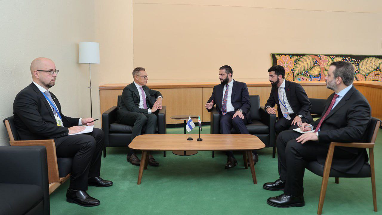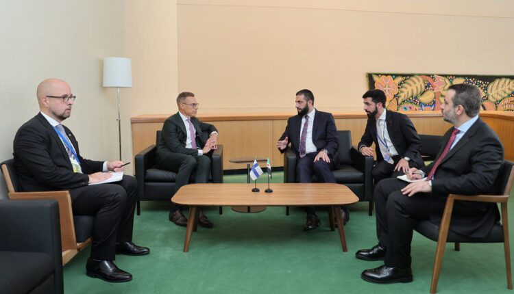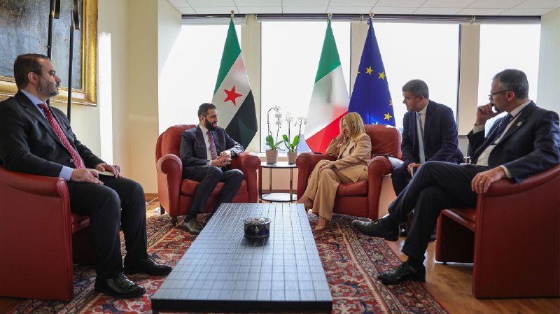 كما التقى الرئيس الشرع رئيس جمهورية فنلندا ألكسندر ستوب، ورئيسة وزراء إيطاليا جورجيا ميلوني بمقر البعثة الإيطالية في نيويورك، وذلك بحضور وزير الخارجية والمغتربين أسعد الشيباني.