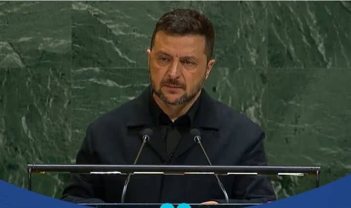في كلمة للرئيس الأوكراني فلوديمير زيلينسكي أمام الجمعية العامة للأمم المتحدة في نيويورك، ذكر أن القانون الدولي وحده لا يكفي لردع من يختارون الحروب، ولا يمكننا ضمان الأمن بشكل وثيق إلا بسلاحنا وشراكاتنا الأمنية، مضيفاً: “نحن نريد السلام لكن روسيا ترفض وقف الحرب”.