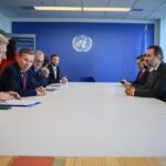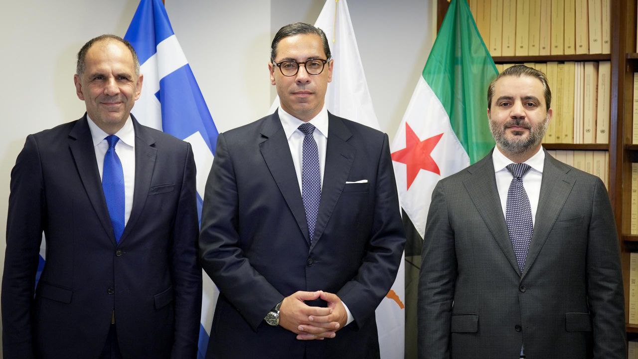 وحضر الوزير الشيباني اجتماعاً ثلاثياً جمع كلاً من وزير خارجية اليونان السيد جورجوس جيرابيتريتس، ووزير خارجية قبرص السيد كونستانتينوس كومبوس، وجميع هذه اللقاءات الدبلوماسية جاءت على هامش أعمال الدورة الحالية للجمعية العامة للأمم المتحدة.