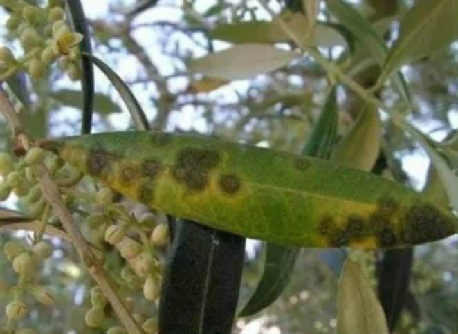 حيث تبدأ الإصابة بظهور بقع دائرية بنية أو سوداء اللون على الأوراق، محاطة عادة بـ هالة صفراء أو خضراء، تشبه عين الطاووس، وهي السمة التي أعطت المرض اسمه، ومع تفاقم الحالة تبدأ الأوراق المصابة بالتساقط بكثافة، ما يضعف عملية التمثيل الضوئي ويؤدي إلى نقص التغذية العامة للشجرة، كما أن الإصابة قد تطال العيون الحديثة، مسببة انخفاضاً في إنتاج المواسم التالية.