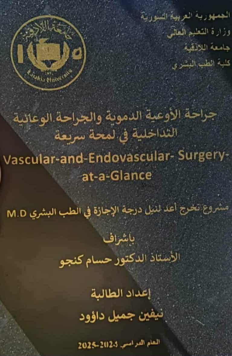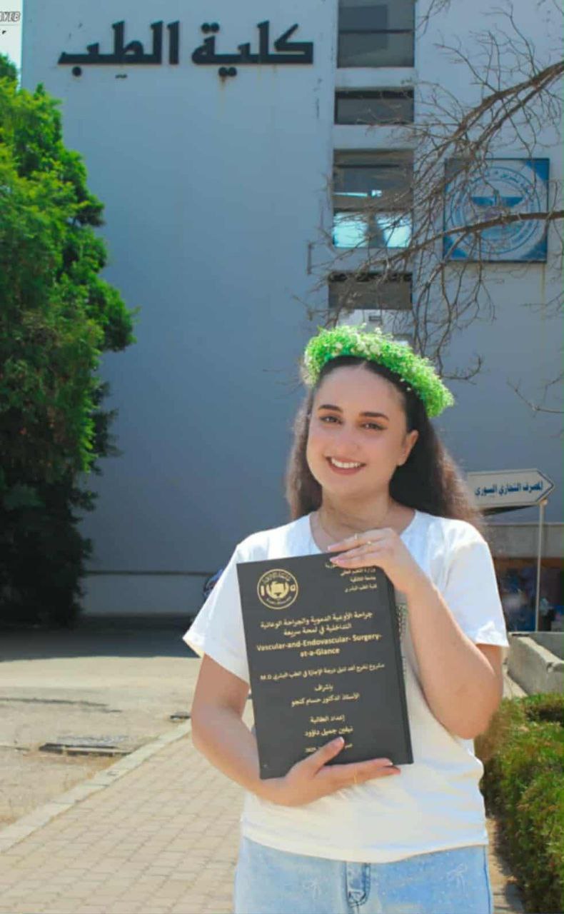 من رحم المعاناة والأعباء المادية، أزهرت ثمرة التفوق في مجال الطب، نيفين جميل داؤود من جامعة اللاذقية حققت معدل 95/95 في مشروع تخرجها بعنوان “جراحة الأوعية الدموية والجراحة الوعائية التداخلية في لمحة سريعة” تحت إشراف أ.د. حسام كنجو، هذا الإنجاز جاء نتيجة سنوات من السهر والعمل الدؤوب، حيث لم تكسرها الصعوبات بل زادتها عزيمة وإصراراً