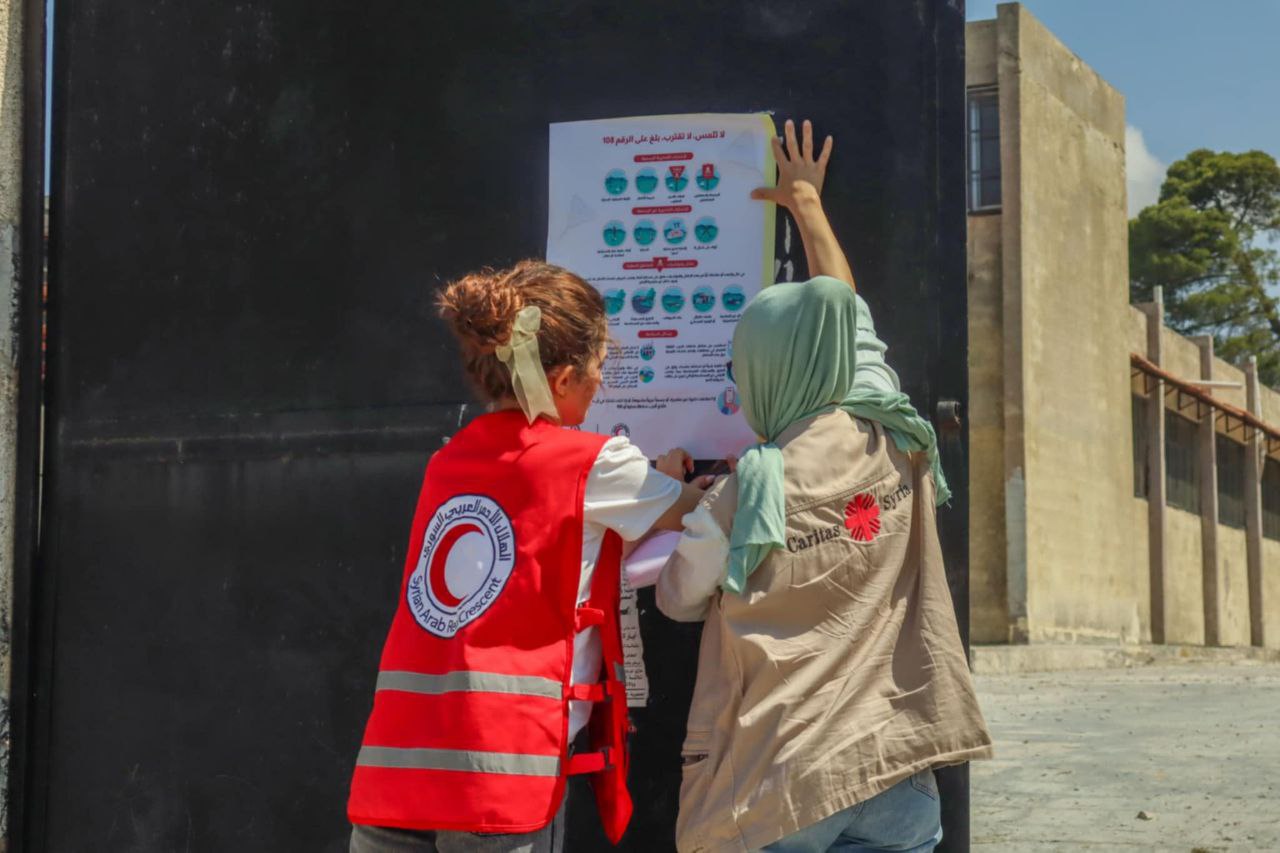 ووفقاً لمصدر رسمي من الهلال الأحمر العربي السوري تم تعريف المزارعين بمخلفات الحرب وأنواع الألغام، إضافة إلى الإشارات التحذيرية والسلوكيات الأكثر أماناً لتفاديها.