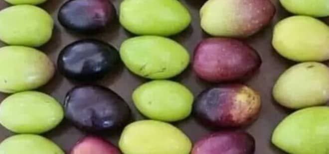 فمنها الخضيري، الذي يعتبر من أجود الأنواع والأكثر انتشاراً والأعلى مردوداً، حيث يستخدم لصنع كبيس الزيتون ويسمى محلياً “المرصوص” فتُضرب الثمرة بقطعة من خشب أو حجر لتخرج منها مادة سائلة لزجة، وذلك للإسراع في تناولها مع وجبات الطعام بأقصر مدة ممكنة، واستُبدلت تلك الطريقة بآلة تسمى “كسّارة الزيتون”، وقد انتشرت لسهولة استخدامها ولأدائها العالي في تكسيرها للثمار، الأمر الذي وفّر الجهد والوقت، والنوع الثاني الذي أشار إليه المؤلف هو “الدرمليلي” أو ” تمر ليلي”وهي ذات حجم أكبر من بقية الأصناف، وتخرج منها في حال الضغط عليها مادة لزجة بلون أحمر غامق، يرجّح أنها أخذت هذا الاسم من لون السائل، وهذا النوع هو المناسب والأكثر جودة” للتعطين”.