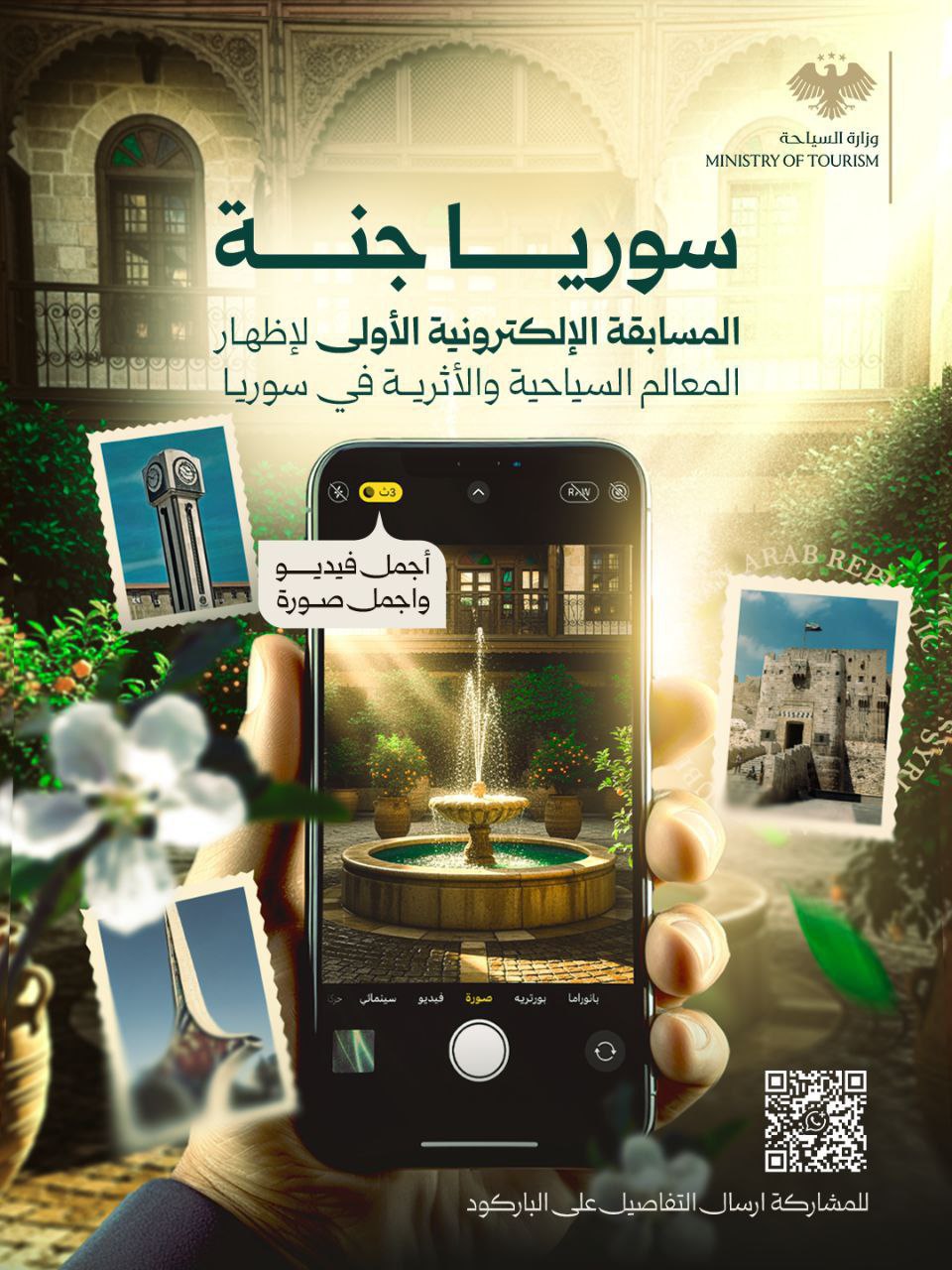 أطلقت وزارة السياحة المسابقة الإلكترونية الأولى المخصصة لإبراز المعالم السياحية والأثرية في سوريا، وتأتي هذه الخطوة ضمن جهودها المستمرة لتسليط الضوء على التراث الغني للبلاد وتعزيز مكانتها على خريطة السياحة الإقليمية والعالمية