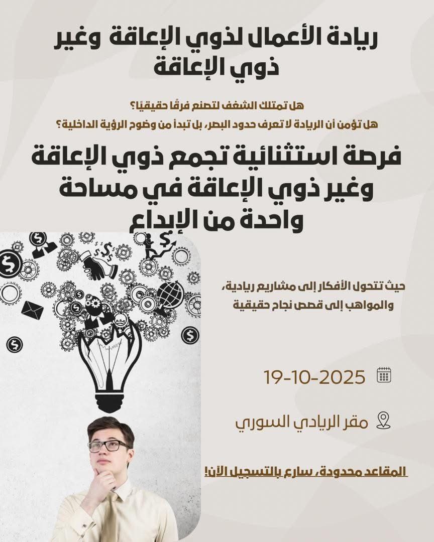 في مبادرة نوعية تهدف إلى الدمج المجتمعي وتعزيز ثقافة الريادة لدى الشباب، تُطلق منصة خبراء التدريب بالتعاون مع شبكة نول ومبادرة تمكين ورشة تدريبية مجانية بعنوان “ريادة الأعمال للمكفوفين والأصحاء”، وذلك يوم الأحد 19 تشرين الأول 2025 من الساعة الثالثة حتى الخامسة مساءً.