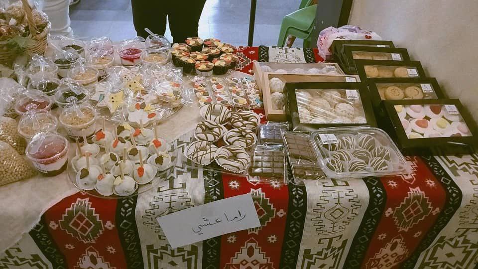 بينما زيَّنت الشابة راما عشي طاولتها بأصناف متنوعة من المعمول والكب كيك وشوكولا اللوزينا والتشيز كيك..، وجاورتها في الطاولة السيدة سحر جردي والسيد ناصر الحاطوم بمنتجات العسل الطبيعي وإنتاج المقررات الطبيعية من دبس رمان، ماء ورد، ماء زهر، خل التفاح.. وتين الهبول والمكدوس والجوز البلدي…