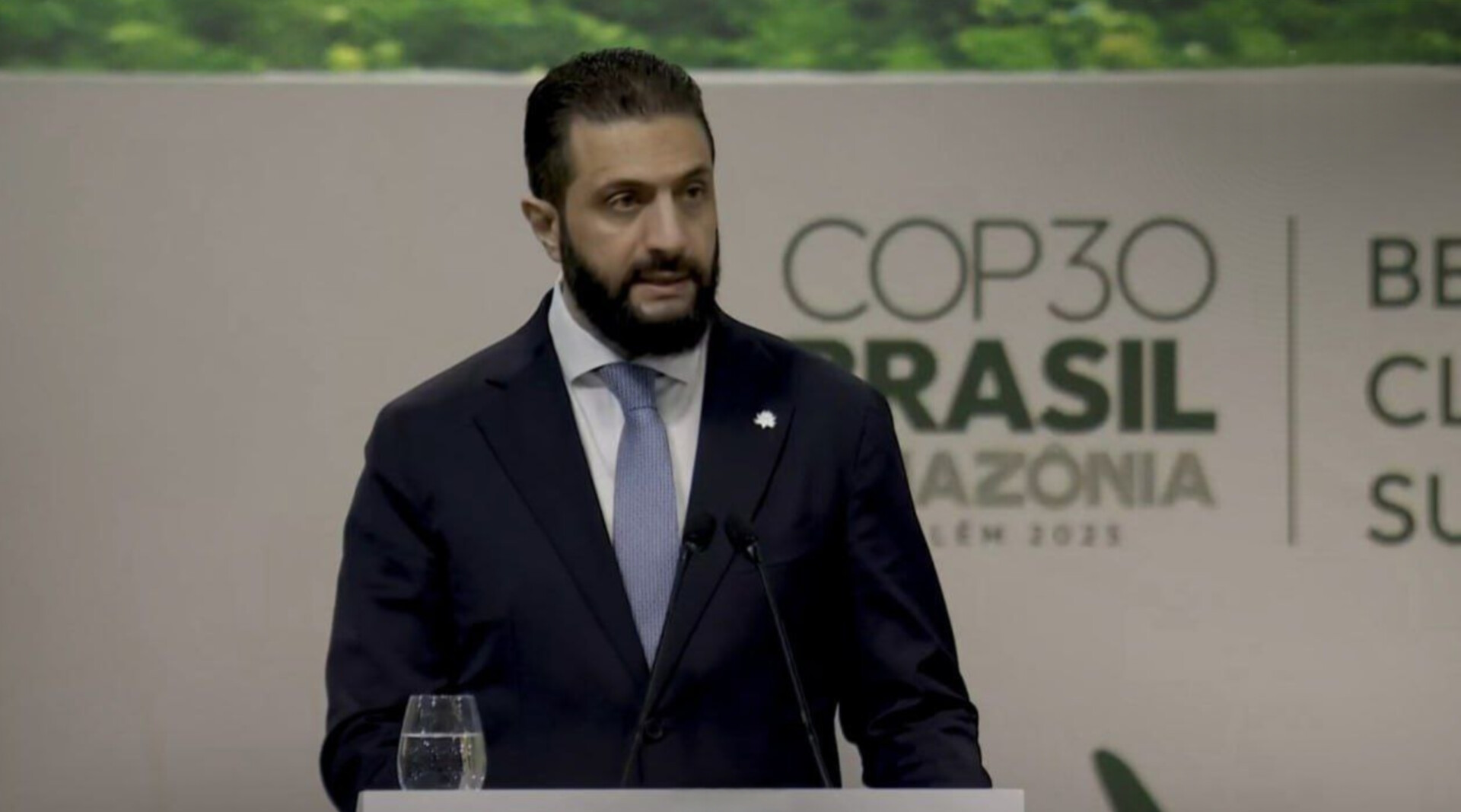 وفي كلمته خلال مؤتمر قمة المناخ COP30، أكد السيد الرئيس أحمد الشرع أن سوريا واجهت على مدى السنوات الماضية تحديات بيئية معقدة وتراكمية، أثرت بشكل كبير على الإنسان والموارد، وانطلاقاً من الإدراك بأن غابات الأمازون تمثل رمزاً للحياة على كوكبنا، نجدد التزامنا الجماعي بحماية بيئتنا ومناخنا، من أجل ضمان مستقبلٍ آمنٍ ومستدامٍ لأجيالنا القادمة، وتتجلّى رؤيتنا الطموحة في خططنا لإعادة الإعمار والتعافي، التي بدأنا بتحويلها إلى سياسات وبرامج ومشاريع ملموسة على أرض الواقع، وإننا نؤمن بأن التحديات الجسيمة تحمل في طياتها فرصاً ثمينة، لذلك ندعو الشركاء الدوليين إلى الاستثمار في سوريا، خصوصاً في قطاعات الطاقة المتجددة، والمدن الخضراء المستدامة، والمشاريع الرائدة التي توفر الدولة لها الحماية والرعاية والضمانات اللازمة، واكد السيد الرئيس التزام سوريا الكامل بالاتفاقيات الدولية، وعلى رأسها اتفاقية الأمم المتحدة الإطارية بشأن تغير المناخ، ودعى إلى تعزيز أواصر التعاون من الأمازون إلى نهرَيْ بردى والفرات، في إطار تعاون دولي متين، ودعمٍ للمكانة الريادية التي تتنبؤها الدول النامية، والتي تقودها اليوم البرازيل بكل جدارة وكفاءة.