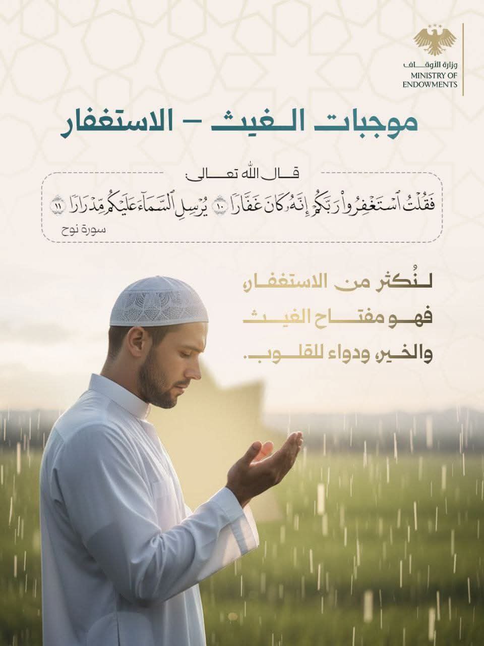 أعلنت مديرية الأوقاف بطرطوس عن دعوة لصلاة الاستسقاء يوم الجمعة القادم، تضرعاً إلى الله لطلب الغيث والرحمة.