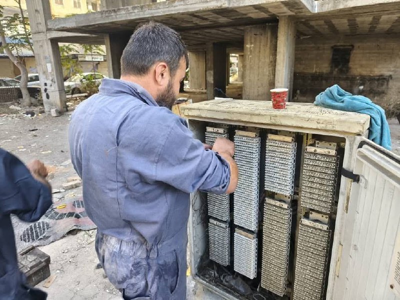 تواصل فرق الصيانة في فرع اتصالات اللاذقية أعمال صيانة وتوصيل الكوابل الهاتفية المغذية لمناطق الدعتور، البلاطه، أوتستراد الثورة التابعة لمركز هاتف أفاميا بعد أن كانت قطعتها تلك الورش للصيانة والتوصيل.