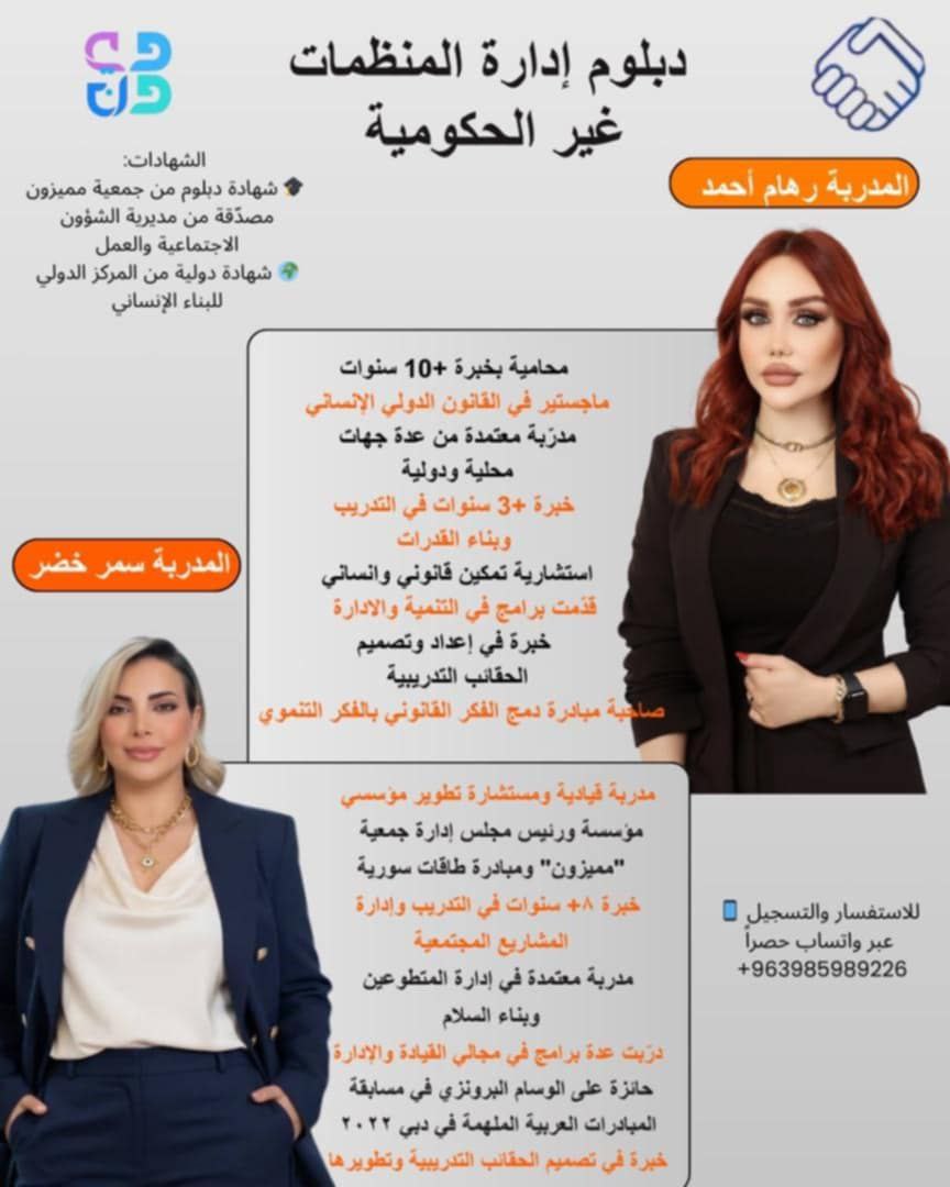 في خطوة جادة تجاه التدريب الاحترافي قامت جمعية “مميزون” بالتعاون مع “المركز الدولي للبناء الإنساني” بتنظيم تدريب احترافي دبلوم “إدارة المنظمات غير الحكومية” لفتح آفاق واسعة لتكوين قائد فاعل مجتمعي بقيادة المدربتين أ.سمر خضر وأ.رهام أحمد.