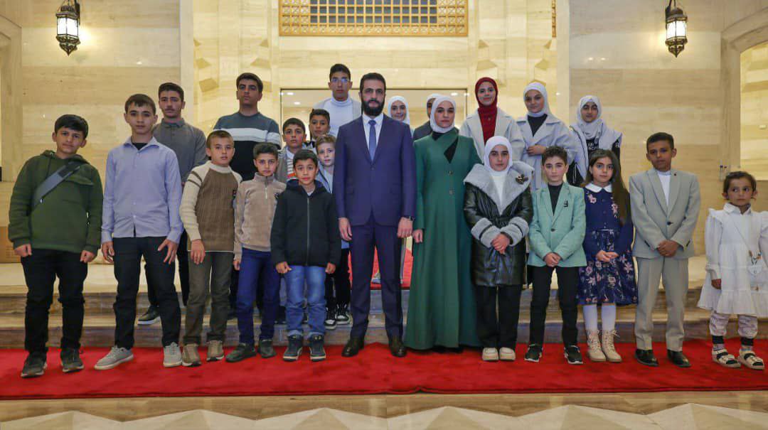 السيد الرئيس أحمد الشرع والسيدة عقيلته يلتقون كوكبة من الأطفال بمناسبة اليوم العالمي للطفولة، وأمام الرئيس وبتشجيع منه يتحول اللقاء إلى ثقة بلا قيود، وأمنيات بلا حدود.