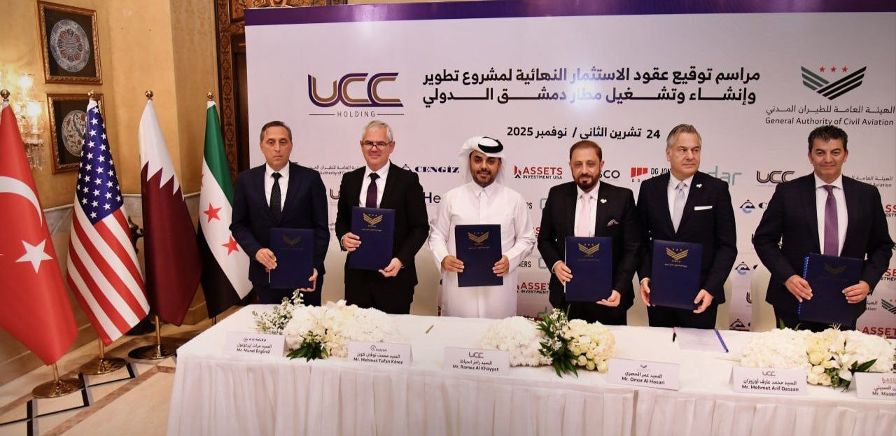 وقّعت الهيئة العامة للطيران المدني والنقل الجوي السوري اليوم العقود النهائية مع ائتلاف دولي بقيادة شركة “أورباكون القابضة” ومشاركة شركات “جينكيس” و”كاليون” التركيتين و”استس” الأمريكية، لتطوير وتوسعة وتشغيل مطار دمشق الدولي.