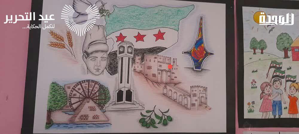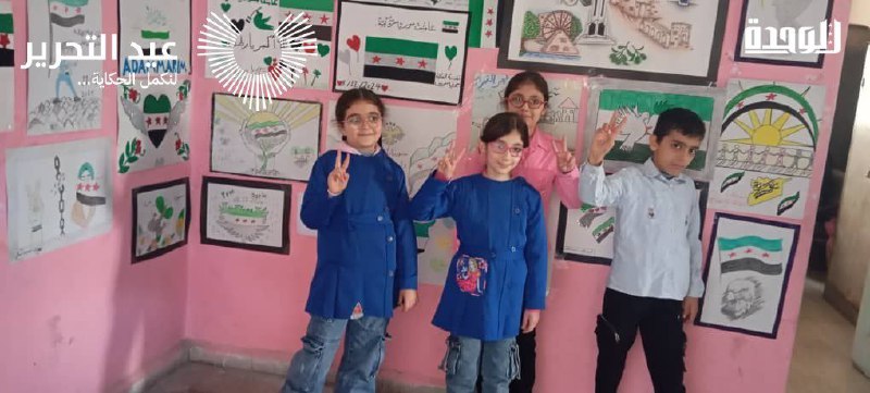 وقد امتلأت جدران المدرسة برسومات تجسّد التحرر من الظلم والقيود، معبرةً عن الأمل ببزوغ فجر جديد وبداية مشرقة للوطن.