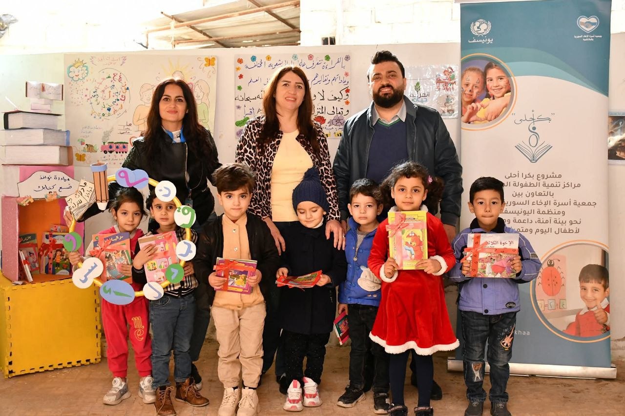 نفذت مراكز مشروع “بكرى أحلى” لتنمية الطفولة المبكرة التابعة لجمعية أسرة الإخاء في البرزين وسقوبين، مبادرة قرائية بعنوان “نوافذ” بالتعاون مع لجنة الأهل والمعلمين (PTA)، وأهالي الأطفال، وذلك بحضور وفد من منظمة اليونيسف وبمشاركة “دار قمر” في اللاذقية بهدف إحياء عادة القراءة بين الأطفال، وتشجيعهم على ممارستها بشكل يومي، لما توفره من فرص تُوسع مداركهم ومعارفهم وتغني مهاراتهم.