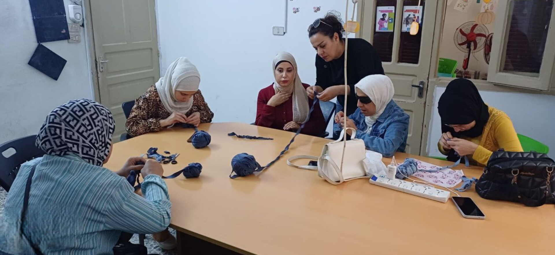في إحدى الورشات التدريبية التي تقيمها الجمعية التقينا سعاد طفران ٣٦ عاماً التي عبرت عن سعادتها بتعلم فن الكروشيه، وأنها قادرة بعد شهرين من التدريب على إنجاز أي قطعة كروشيه.