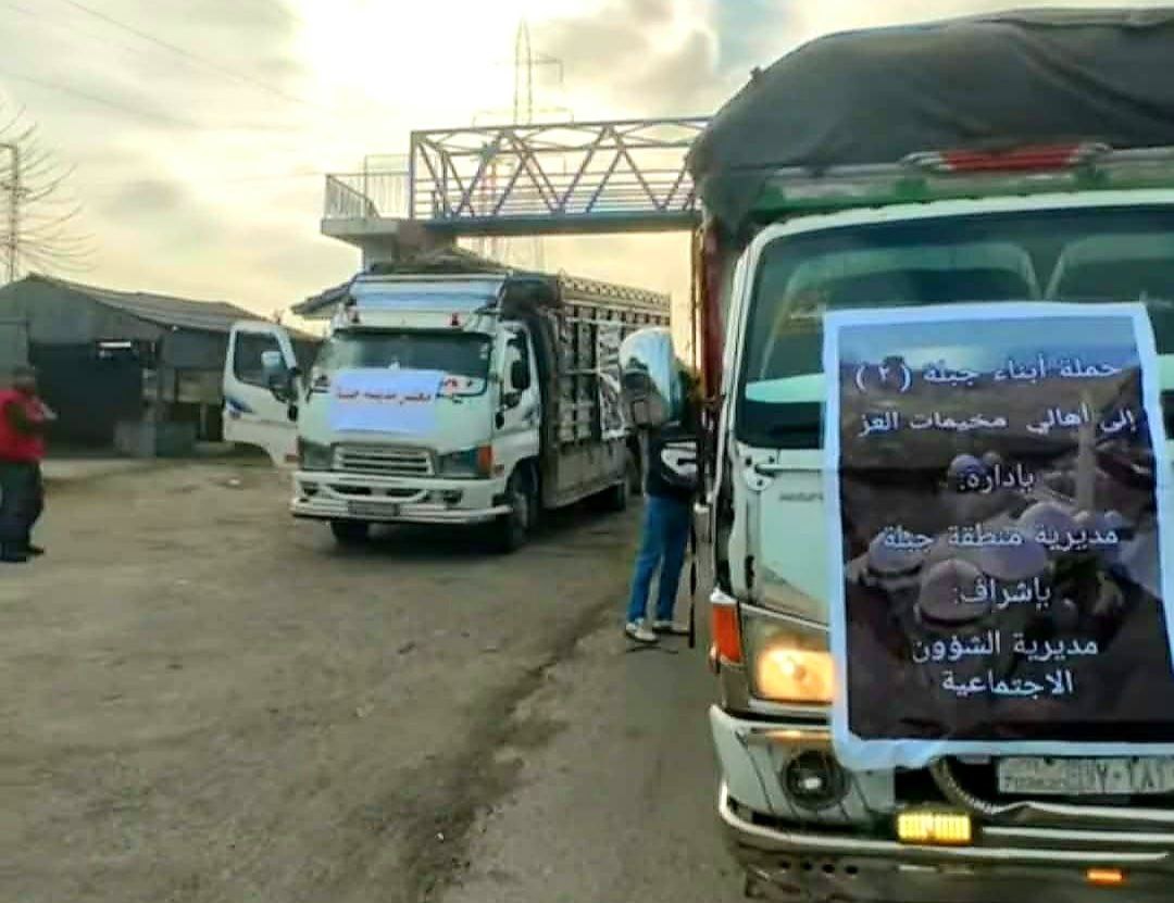 وقد لامس المشهد تفاعلًا إنسانياً لافتاً، حيث تبرع أطفال من مصروفهم اليومي، وساهم مجلس بلدية جبلة بسيارة بيك آب محملة بالأحطاب، فيما قدم العديد من سكان المدينة والريف الملابس والأخشاب والوقود.