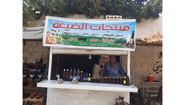 صالح صقر مصطفى، أبو صقر، من قرية دير ماما التابعة لقرية مصياف، ينتج ويبيع منتجات الضيعة (دبس رمان، خل التفاح، تين هبول، دبس الخرنوب، ملوخية والعسل الطبيعي) والذي ترك قريته متجهاً إلى محافظة طرطوس ليبيع ما أعطته الأرض بعد تعب.