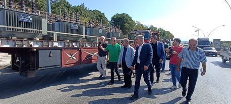 وعند مدخل اللاذقية،استقبل المهندس الزامل رفقة محافظ اللاذقية م. عامر اسماعيل هلال، القافلة المكونة من ١٢ شاحنة، والمحملة بعدد كبير من التجهيزات والمعدات الكهربائية، بحيث يتوجه قسم منها إلى محطة الرستين، والقسم الآخر إلى شركة كهرباء اللاذقية.