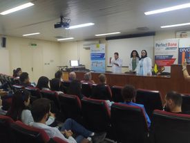 بحضور مدير الهيئة العامة لمستشفى الشهيد إياد إبراهيم الدكتور عماد بشور وضمن إطار البرنامج العلمي للمحاضرات في الهيئة و كذلك إطار التطوير المهني المستمر لوزارة الصحة، أقيمت محاضرة بعنوان : الحماض الخلوني السكري، ألقتها كل من الدكتورة مرح محمد، والدكتورة إيمان درويش بإشراف الدكتور عمار عكوشي، وبدأت المحاضرة بتعريف الحماض الخلوني السكري بأنه عبارة عن حالة طبية إسعافية وقد تهدد حياة المريض إن لم تعالج، وتظهر هذه الحالة عند مرضى السكري من النوع الأول في معظم الأحيان، وبعدها تحدثت عن الآلية المرضية للحماض الخلوني السكري حيث إن الأنسولين مطلوب وضروري لنقل الغلوكوز إلى العضلات، النسيج الشحمي وتثبيط حل الشحوم، في غياب الأنسولين يتراكم الغلوكوز في الدم والكبد، ويتم تقييم مرضى الحماض من خلال عدة عوامل وهي رائحة نفس الفواكه تنفس صعب وعميق، عطش، تعب، رؤية ضبابية، سكر الدم أكثر من 300 ملغ %، فرط سكر الدم، جلد جاف، جفاف الفم، كما يعاني المريض من التهاب معدة وأمعاء إقياء دون إسهال، تجفاف دون نتاج بولي زائد، شدة تنفسية لكن دون موجودات صدرية.