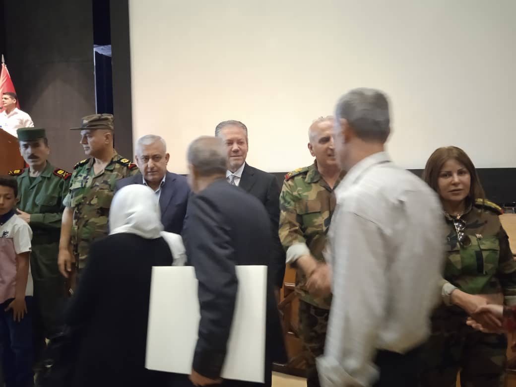 تحت رعاية محافظ اللاذقية عامر إسماعيل هلال، ومديرية شؤون الشهداء والجرحى والمفقودين أقيمت فعالية توزيع أوسمة الإخلاص لأنبل بني البشر في مديرية الثقافة باللاذقية. فبعد الوقوف دقيقة صمت على أرواح شهدائنا الأبرار والنشيد العربي السوري قدّم السيد محافظ اللاذقية كلمة رحب فيها بأمهات وآباء الشهداء وذويهم من زوجات وأولاد بقوله: باسمي وباسم قياديي اللاذقية، ومديرية شؤون الشهداء والجرحى نرحب بالحضور الكريم، والوطن يعلو فوق أي شخص وقضية لكنه ينحني لأبنائه الشهداء، وأشار إلى أننا اليوم نقطف ثمار انتصارنا وصمودنا، وتحدث عن الحضور الكريم والعزيز للسيد الرئيس بشار الأسد في القمة العربية بجدة ممثلاً لسورية بعلمها وشعبها ومذكراً بتضحيات شهدائنا لسورية قلب العروبة النابض، كما نوه إلى أننا رغم الوضع المعيشي الصعب والتحديات الاقتصادية، فنحن على بداية طريق التعافي وكله بفضل صمودنا وتضحيات شهدائنا فلولا الدماء الزكية ما بقيت سورية كما قال السيد الرئيس (أنتم تاريخ سورية الحي، وأنتم الشاهد والمدرسة).