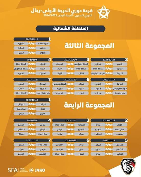 خطاب – الحوارث – الجزيرة – شرطةحماة – الجهاد – النيرب – شرطة طرطوس.