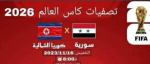 حيث يفتتح منتخبنا مشواره في التصفيات المزدوجة المؤهلة لكأس العالم 2026 وكأس آسيا 2027 بلقاء منتخب كوريا الشمالية في تمام الساعة الثامنة مساء بتوقيت دمشق.