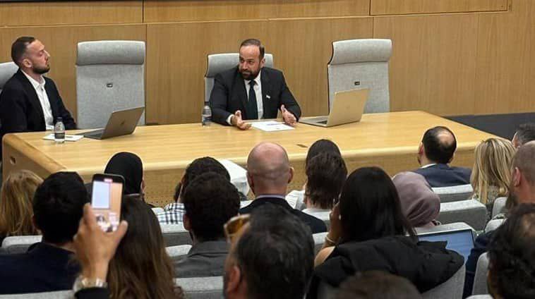 بدعوة من مركز دراسات الشرق الأوسط في جامعة أكسفورد البريطانية ألقى وزير الإعلام الدكتور حمزة المصطفى محاضرة تناول خلالها الفرص والتحديات التي تواجه المشهد الإعلامي في سوريا الجديدة.