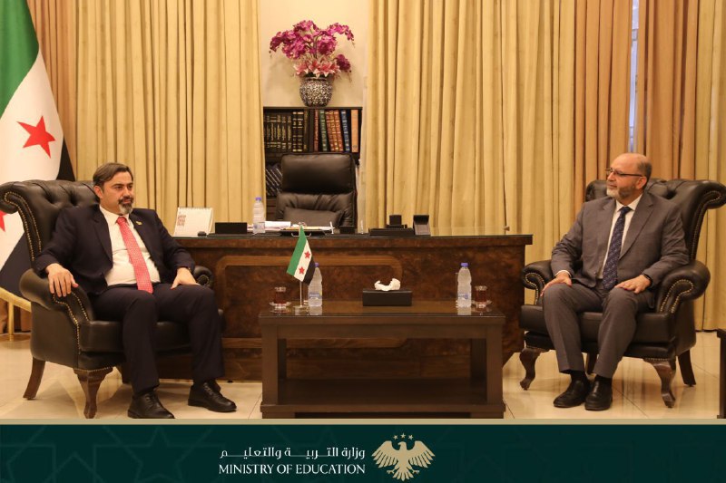 وخلال اللقاء، الذي عُقد في مبنى الوزارة بدمشق اليوم، ناقش الجانبان عدداً من القضايا المحورية المتصلة بتطوير قطاع التعليم، ورفع جودة مخرجاته، إلى جانب التركيز على بناء القدرات المهنية للمعلمين، وتفعيل دورهم التربوي والمجتمعي، انطلاقاً من كونهم الركيزة الأساسية للنهوض بالعملية التعليمية.