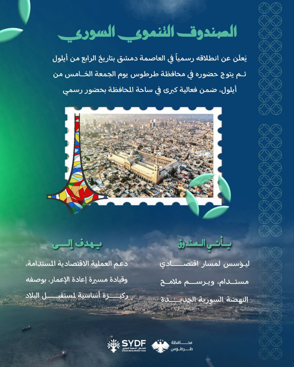 يأتي الصندوق لتأسيس مسار اقتصادي مستدام ورسم ملامح النهضة السورية الجديدة، كما يهدف إلى دعم العملية الاقتصادية المستدامة وقيادة مسيرة إعادة الإعمار، بوصفه ركيزة أساسية لمستقبل البلاد.