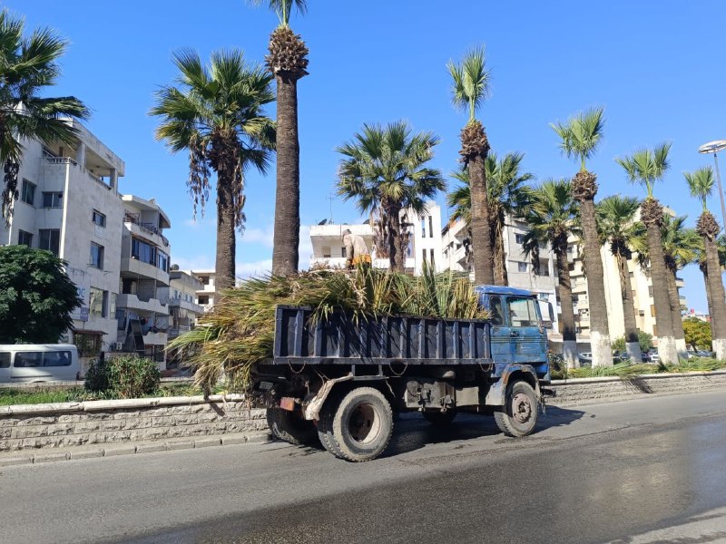 تواصل دائرة الحدائق في مجلس مدينة اللاذقية أعمالها بتقليم وقص أشجار النخيل المزروعة على طول المنصفات في الشوارع الرئيسية، وذلك ضمن جهودها للحفاظ على الغطاء النباتي وتحسين المظهر الجمالي للمدينة.