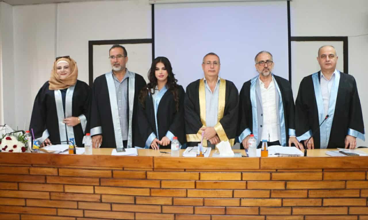 عُقدت جلسة مناقشة الأطروحة في قاعة المؤتمرات، برئاسة لجنة الحكم التي تألفت من: د. مروان عيسى(عضواً ومشرفاً) أستاذ في قسم تمريض الأمومة وصحة المرأة- كلية التمريض – جامعة اللاذقية، د. عيسى دونا (عضواً) أستاذ في قسم تمريض الأمومة وصحة المرأة – كلية التمريض – جامعة اللاذقية، د. حسن صالح (عضواً) أستاذ في قسم التوليد وأمراض النساء – كلية الطب – جامعة اللاذقية، د. أحمد يوسف (عضواً) مدرس في قسم التوليد وأمراض النساء – كلية الطب – جامعة حمص، د. فوزية عثمان (عضواً) مدرس في قسم تمريض الأمومة وصحة المرأة – كلية التمريض – جامعة حماة.
