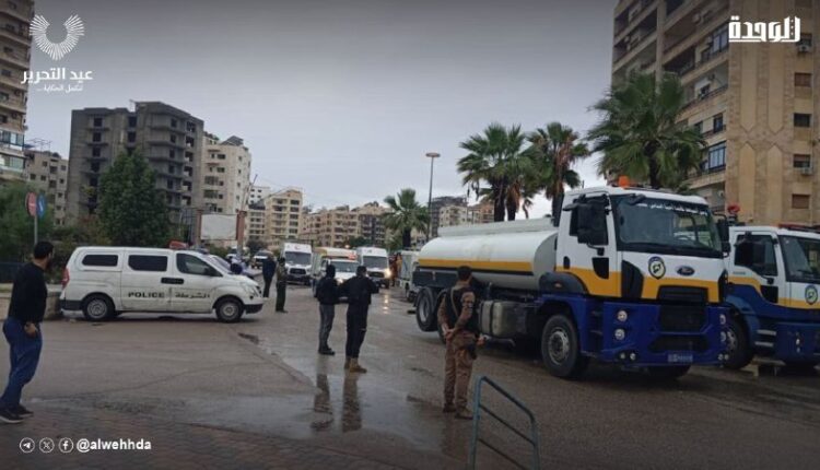 احتفاءً بالنصر… مديرية الطوارئ وإدارة الكوارث في اللاذقية وبالتنسيق مع وزارة الدفاع تنفذ مسيراً مهيباً