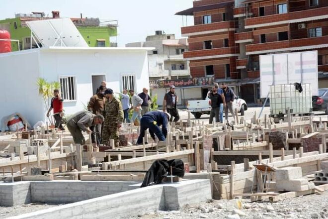وعلى طريق المساكن البديلة أيضاً، أشار المحافظ هلال إلى أن الحكومة أطلقت العمل ببناء أبراج سكنية في المحافظة من خلال المؤسسة العامة للإسكان للمتضررين من الزلزال، و العمل جارٍ في هذا المشروع بشكل جيد ومتابعة ميدانية لحظية، لإنجازه وفق أفضل الشروط وبالسرعة المطلوبة،حيث تمت المباشرة بإنجاز 4 أبراج تضم 160 شقة من إجمالي 8 أبراج سكنية، وقد أنجزت الشركات الإنشائية العاملة به أعمال صبّ القواعد والرقبات والعزل تمهيداً لردم الأرضيات وصبّ بلاطة الطابق الارضي.